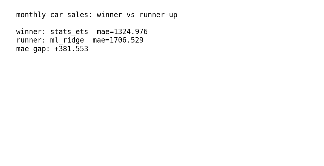 monthly_car_sales: stats_ets won the backend comparison and produced a publishable pack.